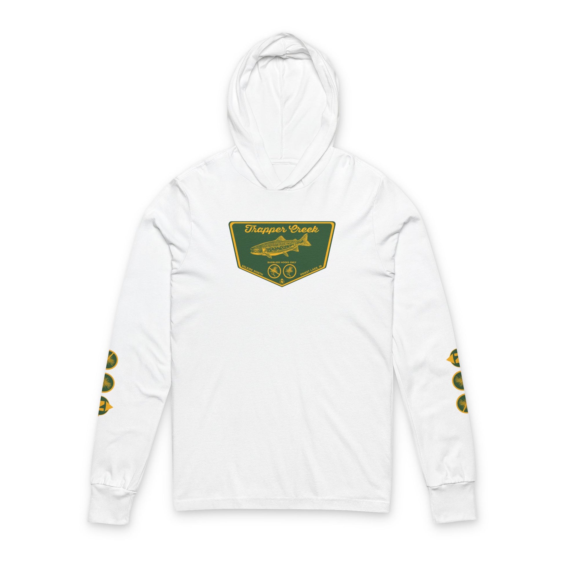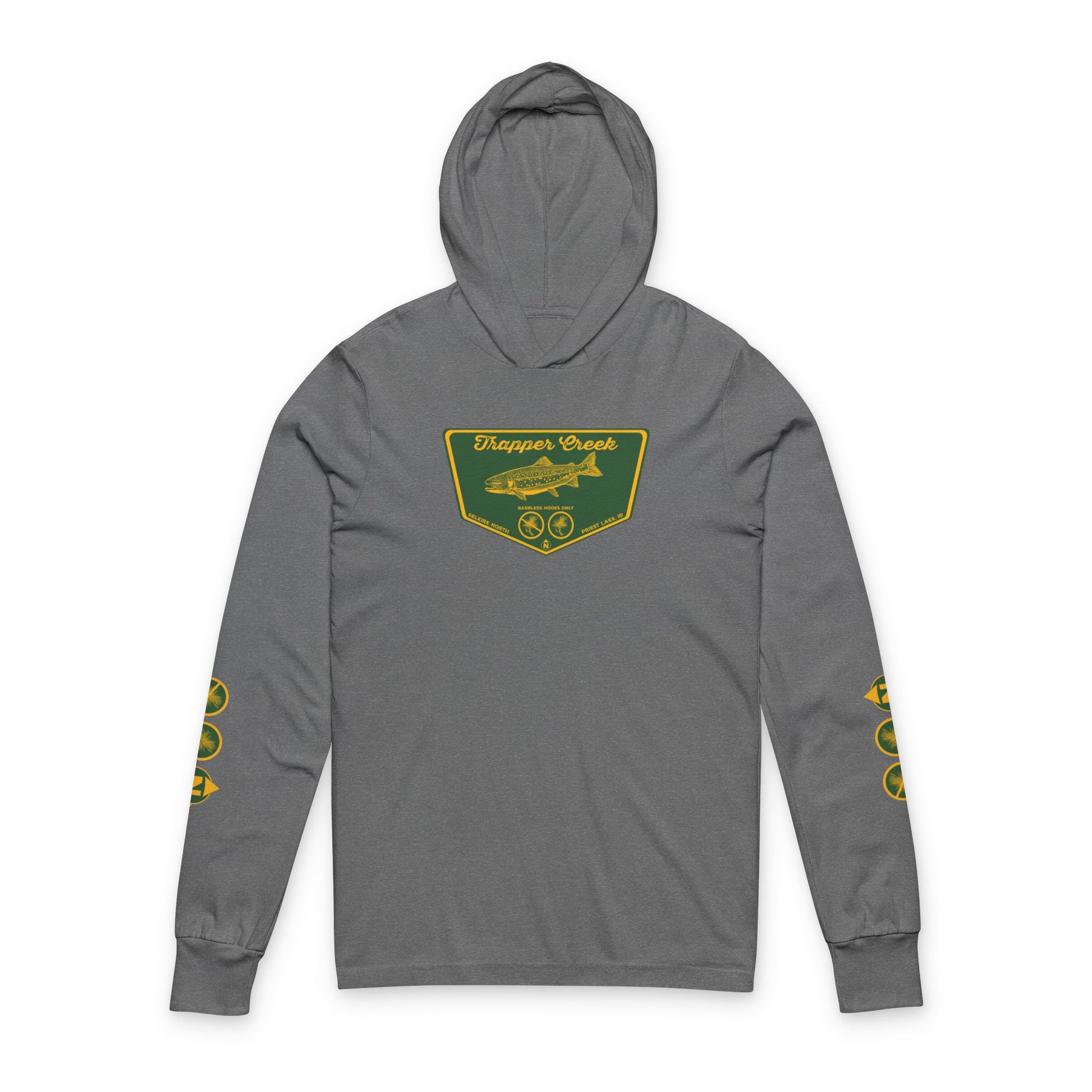 Introducing our Unisex Hooded Long Sleeve Tee, the perfect blend of comfort and style. Made with soft, breathable airlume combed and ringspun cotton, this tee offers an effortlessly relaxed vibe that is both casual and chic. Ideal for wearing while tossing flies on the water, around the campfire, or on casual Fridays at the office. The hoodie style adds an extra layer of warmth, making it a great choice for chilly evenings or outdoor adventures.