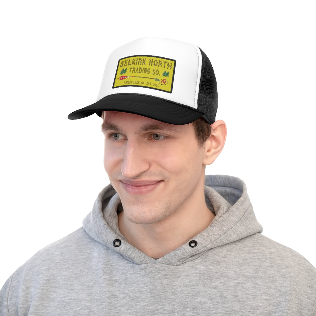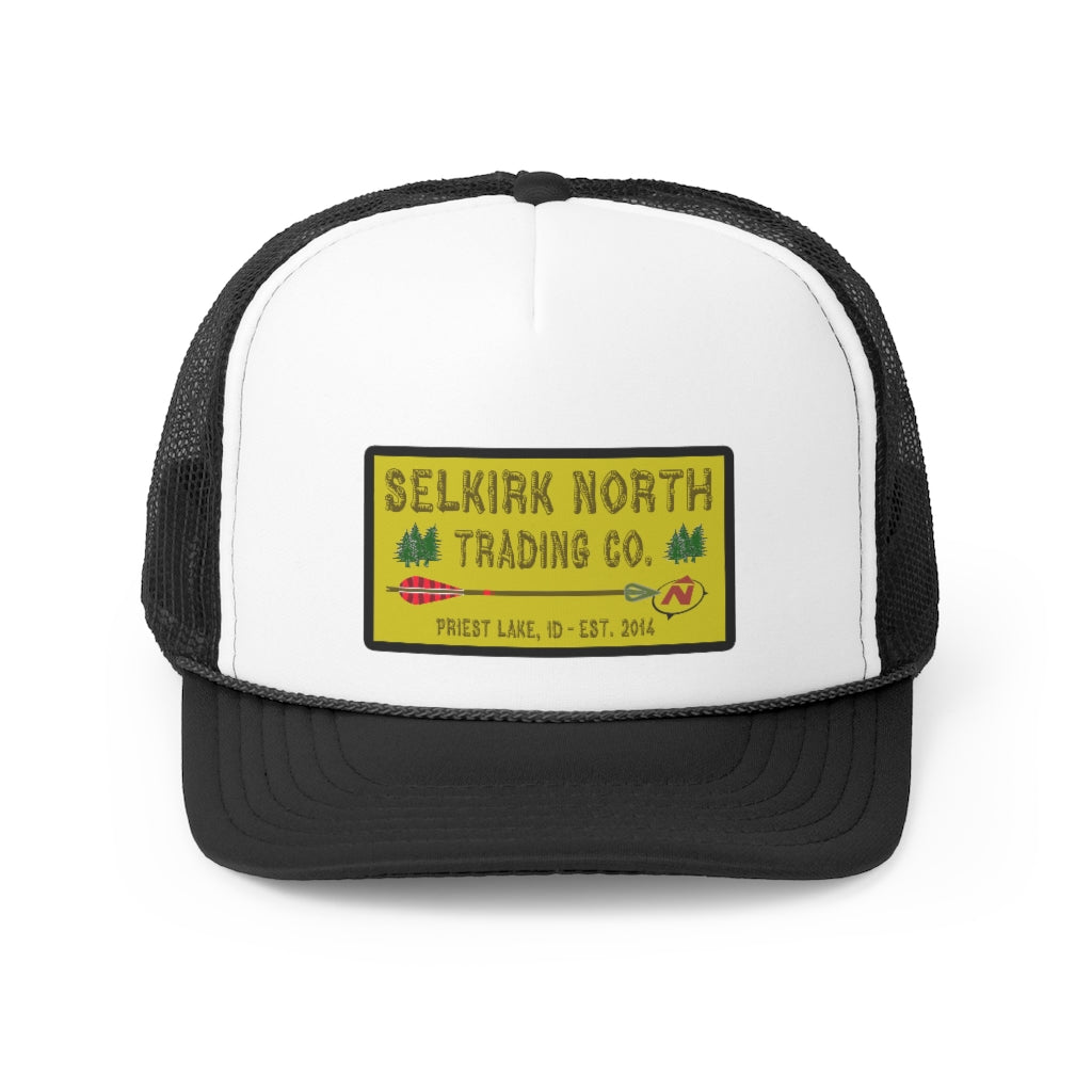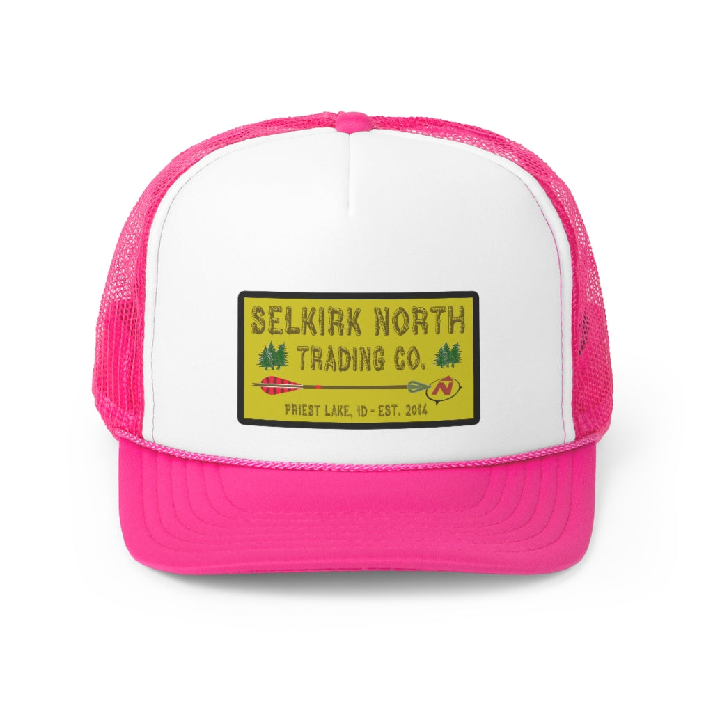 Trucker caps are perfect for almost any occasion. A 100% polyester front and 100% nylon mesh weave back make these hats super durable through regular wear and tear. They come in one size with an adjustable plastic snap closure: 22.8" (58cm). The cap's front has six rows of visor stitching. Pick any (or all) of the four-color variations and rep your Selkirk North with retro style!