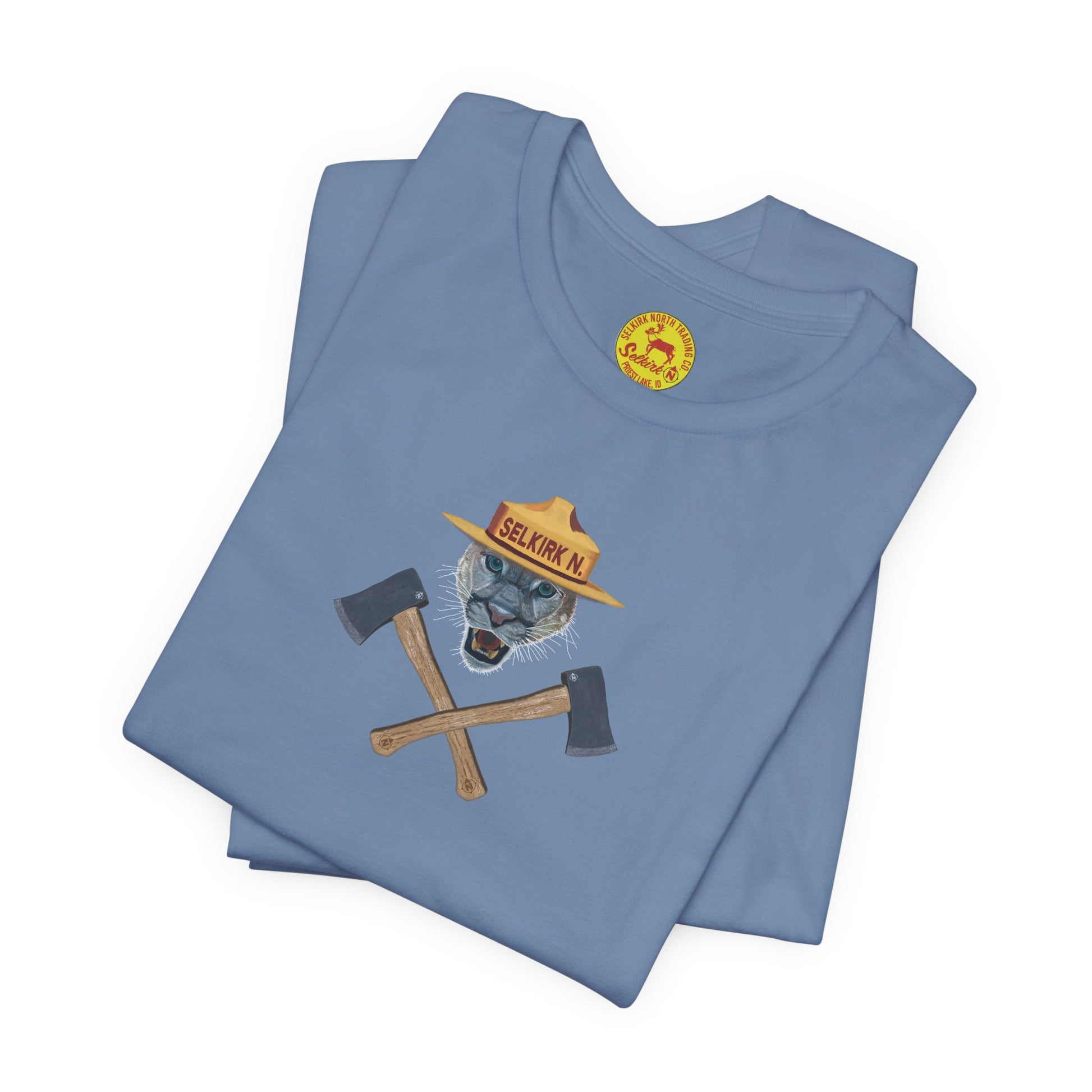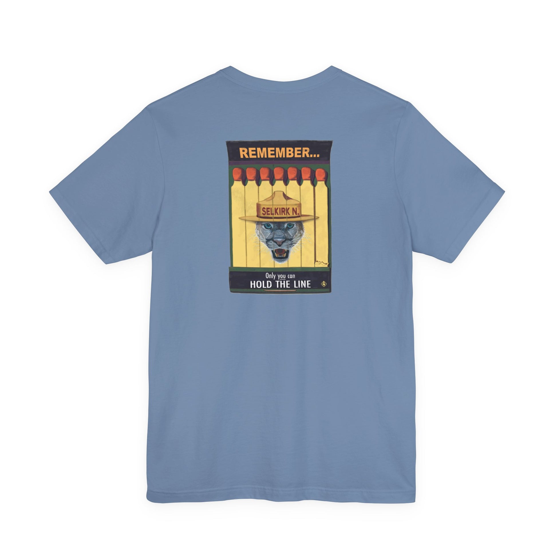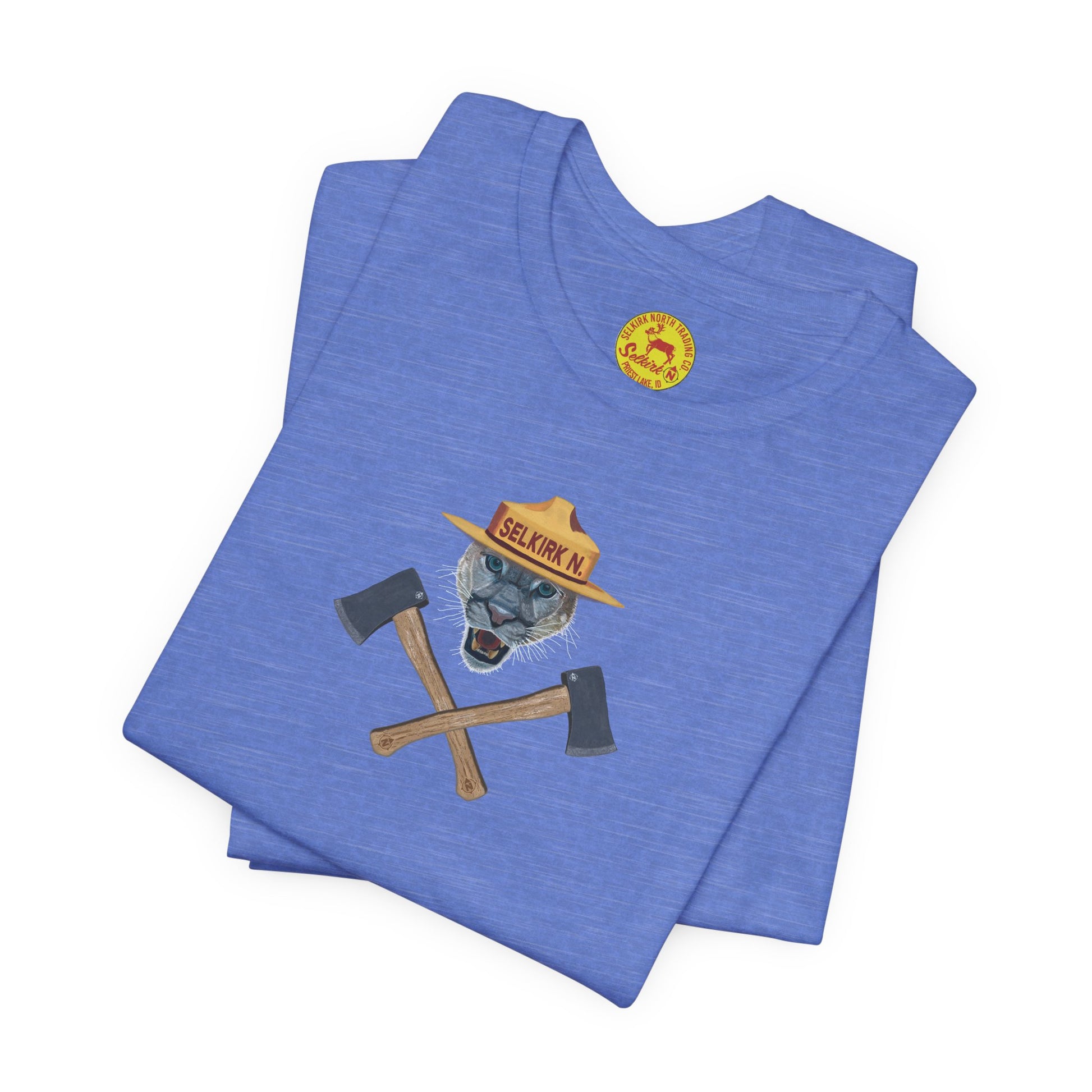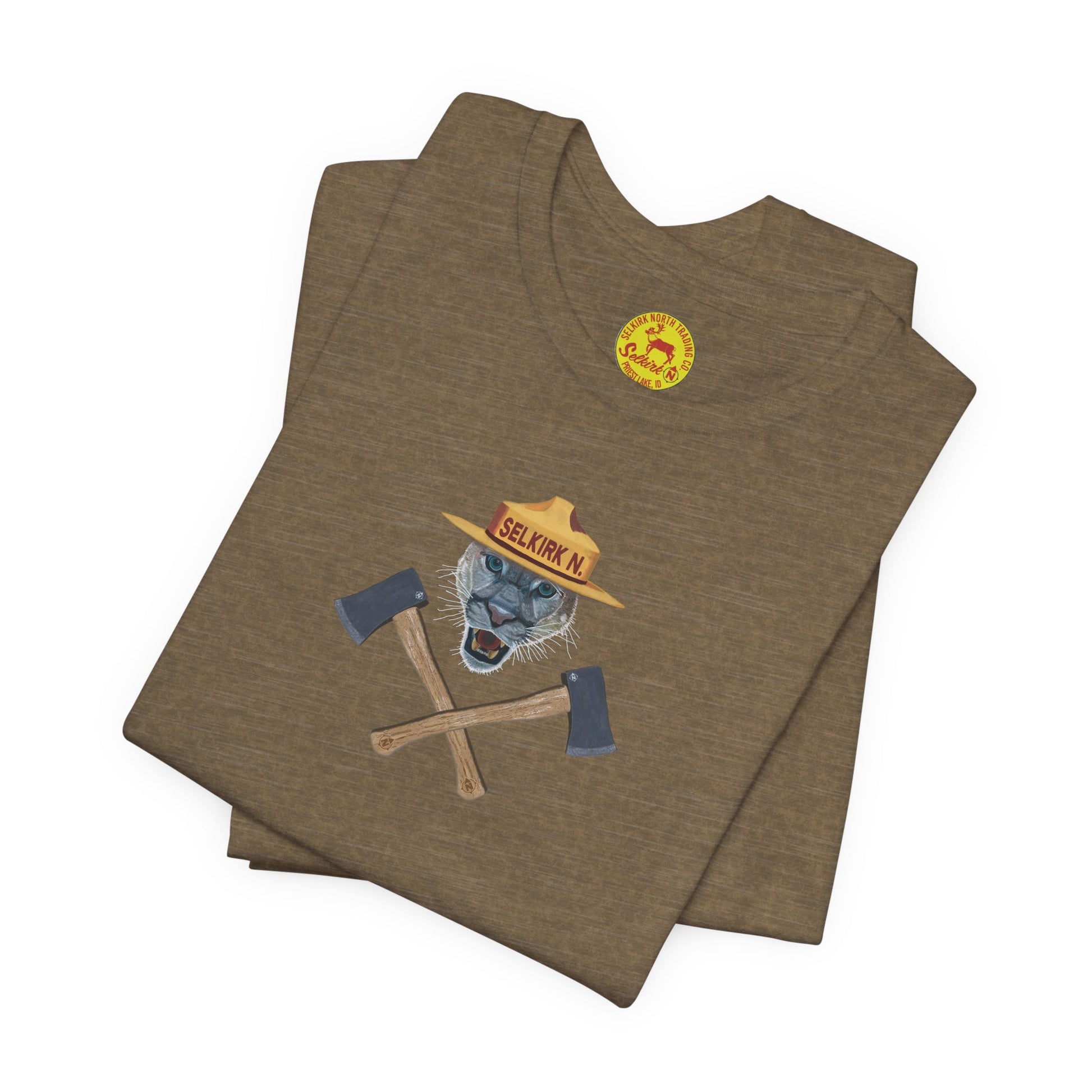 We've done our best to capture the vibe of 1950s Smokey The Bear media with the retro matchbook design featured on the back of this uber comfortable tee. Selkirk Tommy and a pair of crossed hatchets are featured on the front for a retro, campy vibe. This short-sleeved tee fits perfectly and is sure to be your next new favorite.