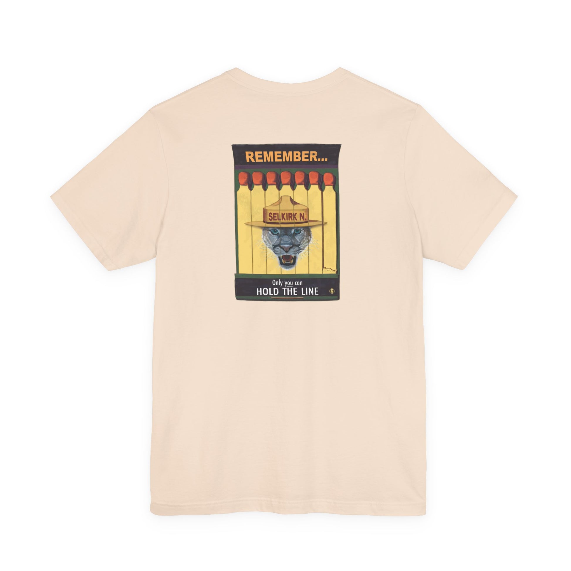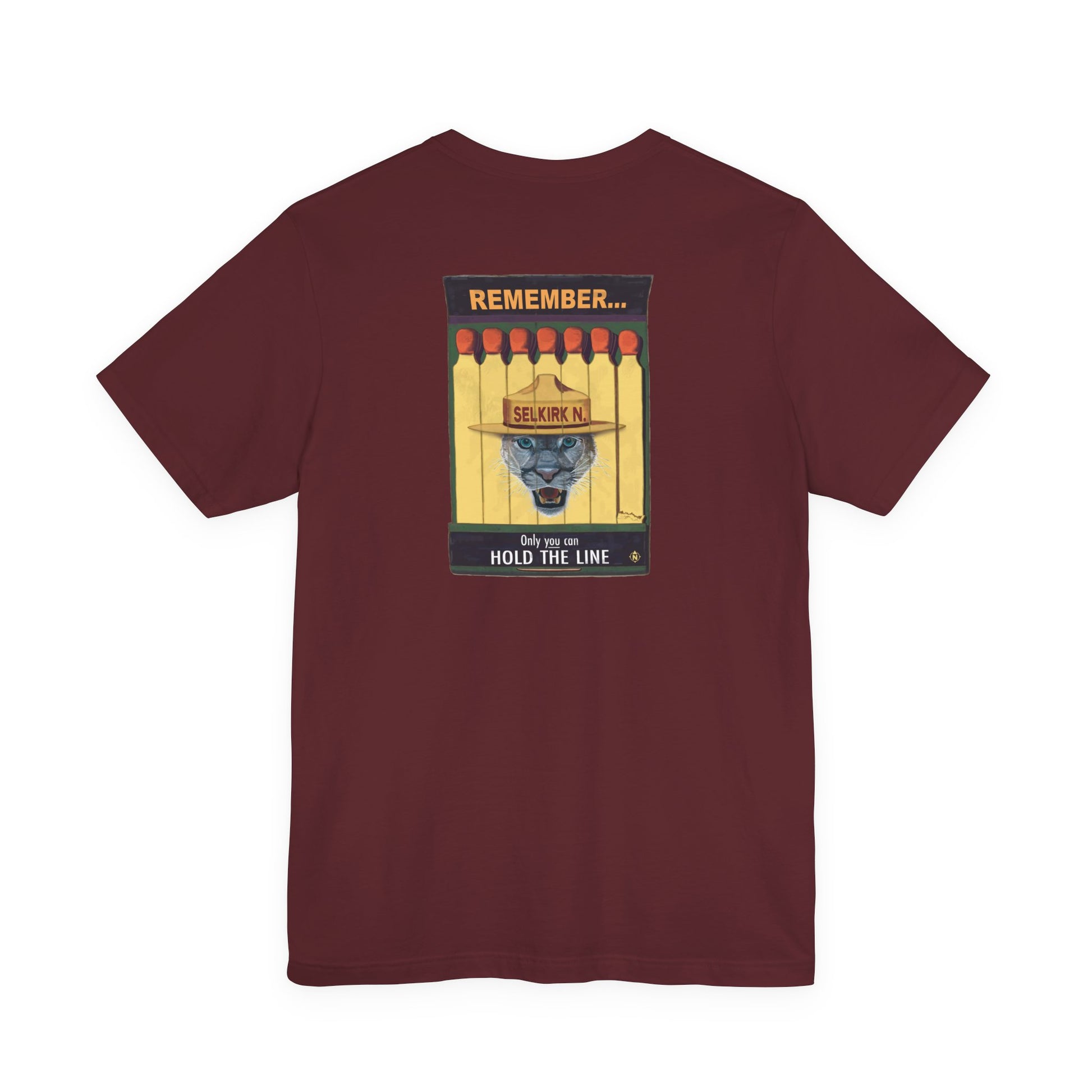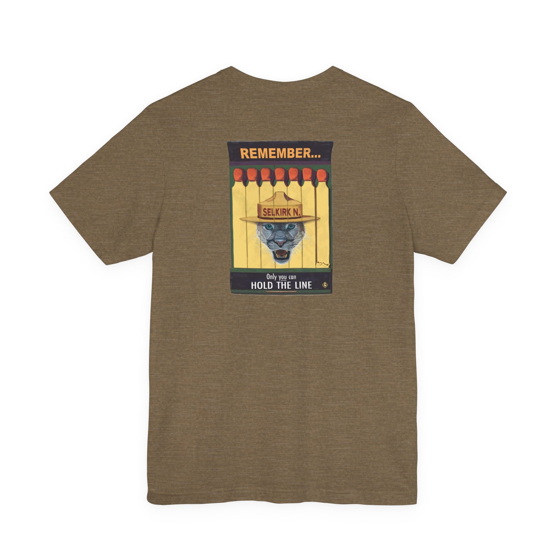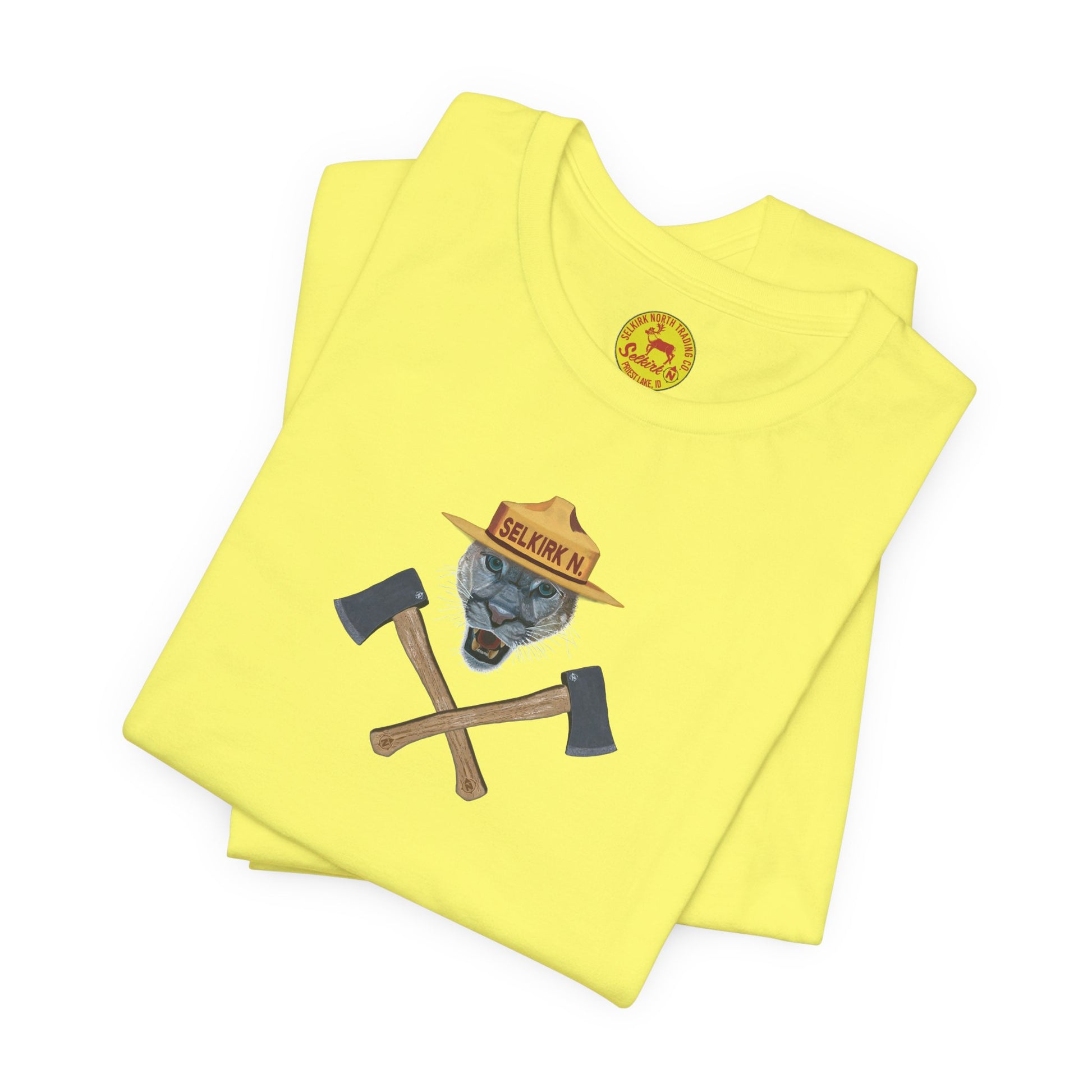 We've done our best to capture the vibe of 1950s Smokey The Bear media with the retro matchbook design featured on the back of this uber comfortable tee. Selkirk Tommy and a pair of crossed hatchets are featured on the front for a retro, campy vibe. This short-sleeved tee fits perfectly and is sure to be your next new favorite.