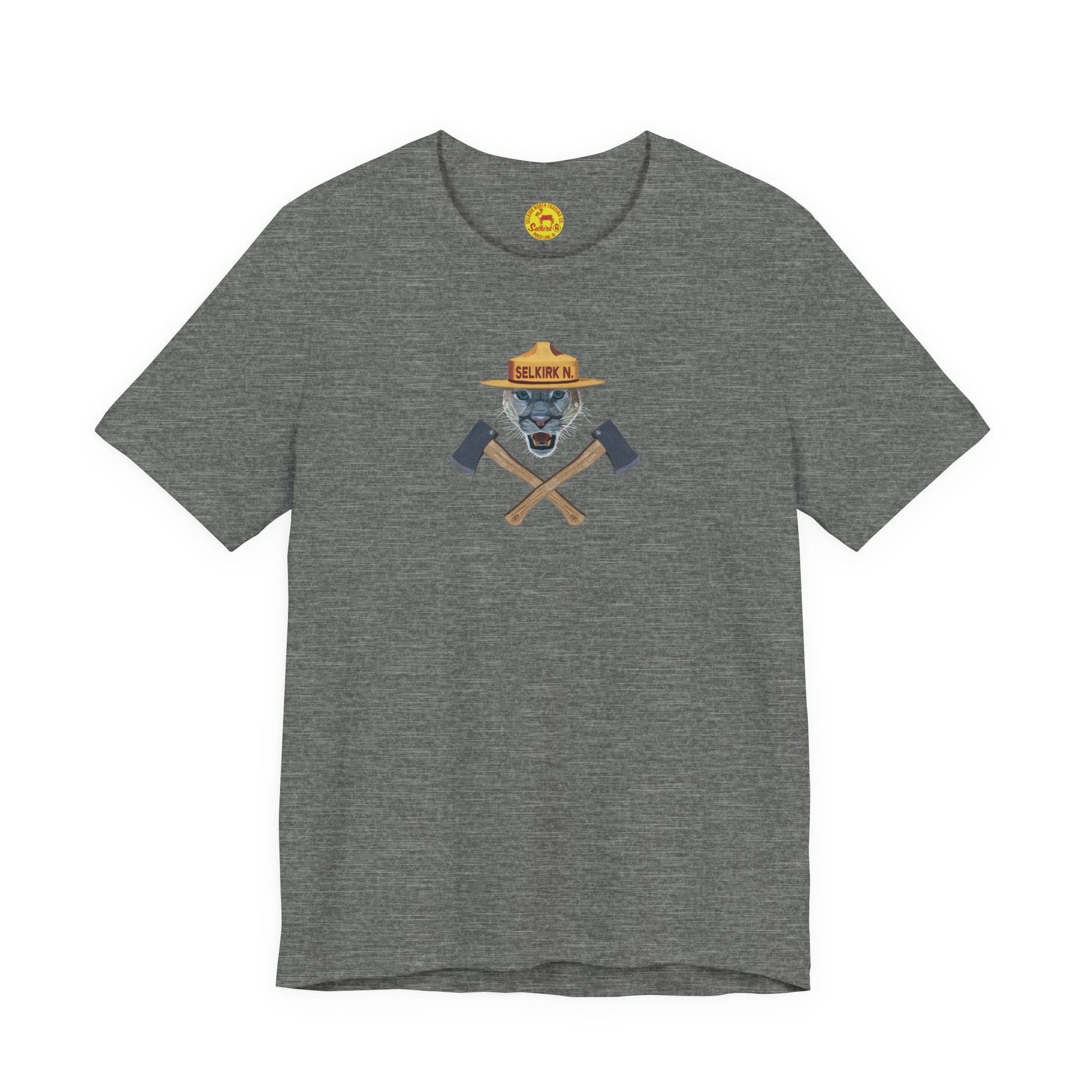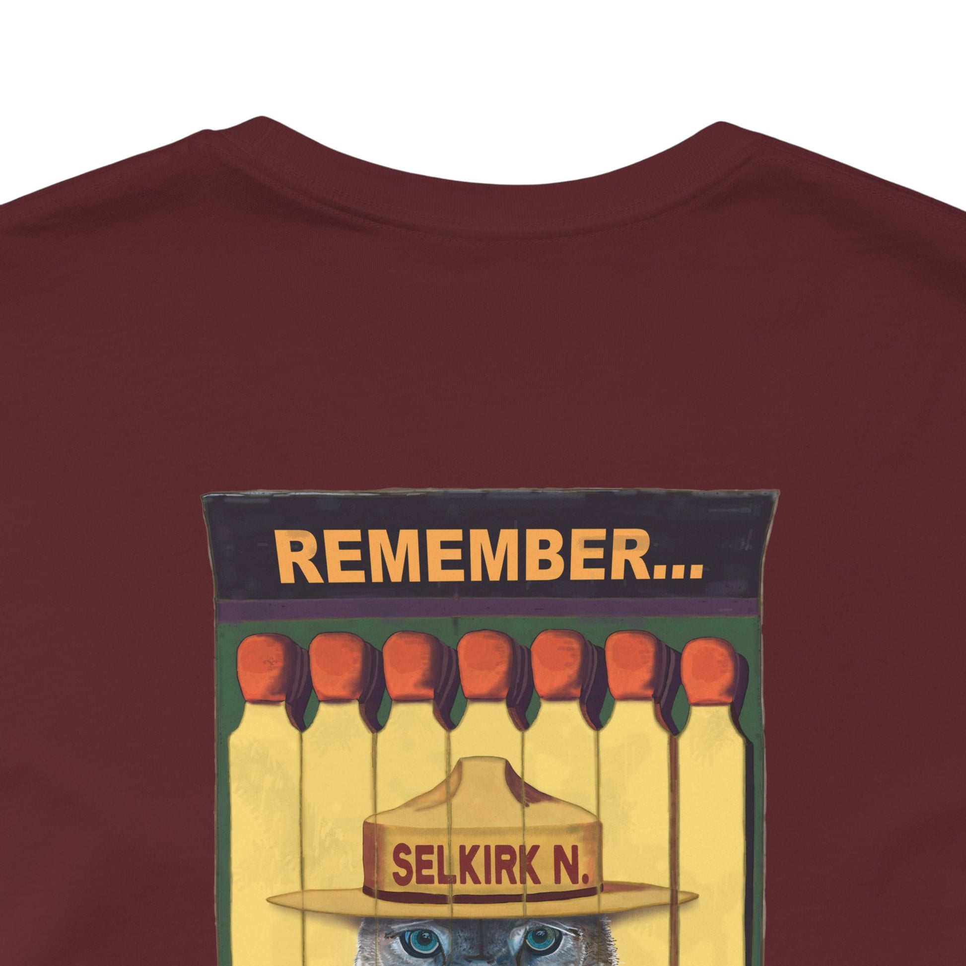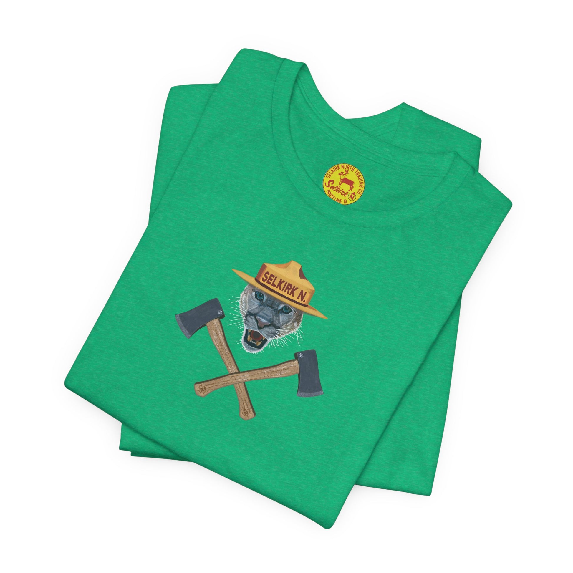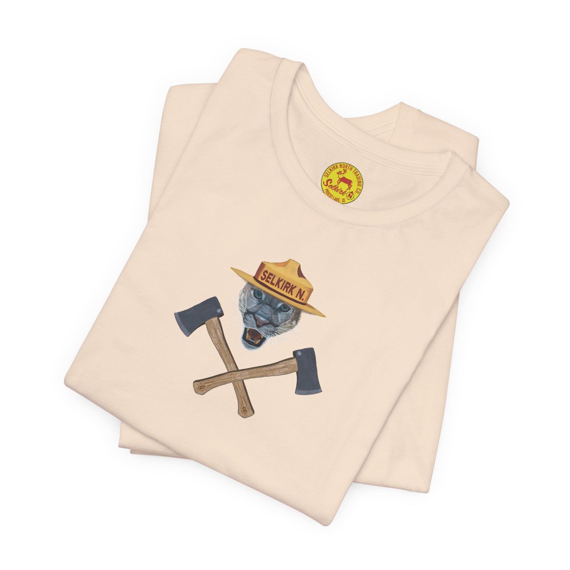 We've done our best to capture the vibe of 1950s Smokey The Bear media with the retro matchbook design featured on the back of this uber comfortable tee. Selkirk Tommy and a pair of crossed hatchets are featured on the front for a retro, campy vibe. This short-sleeved tee fits perfectly and is sure to be your next new favorite.