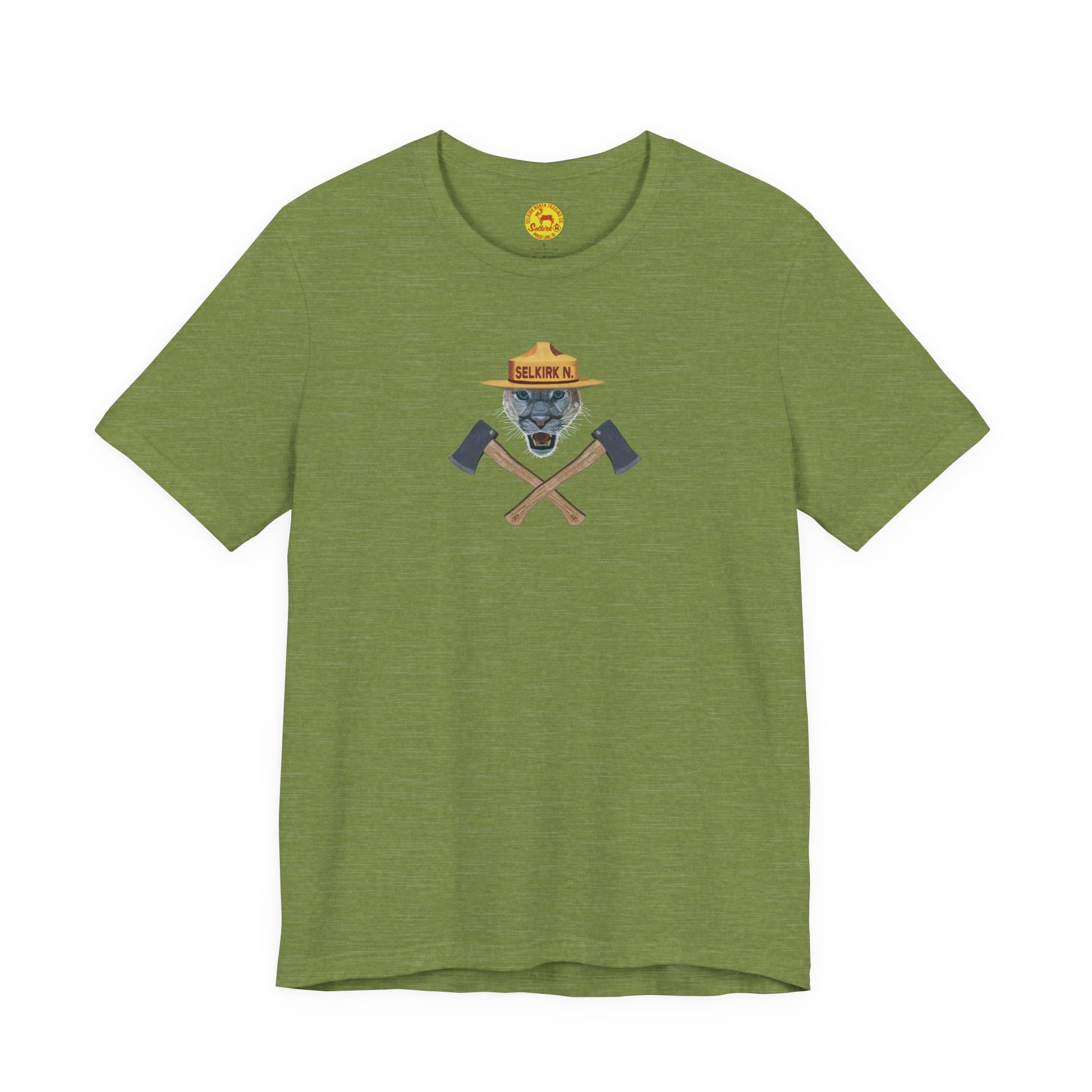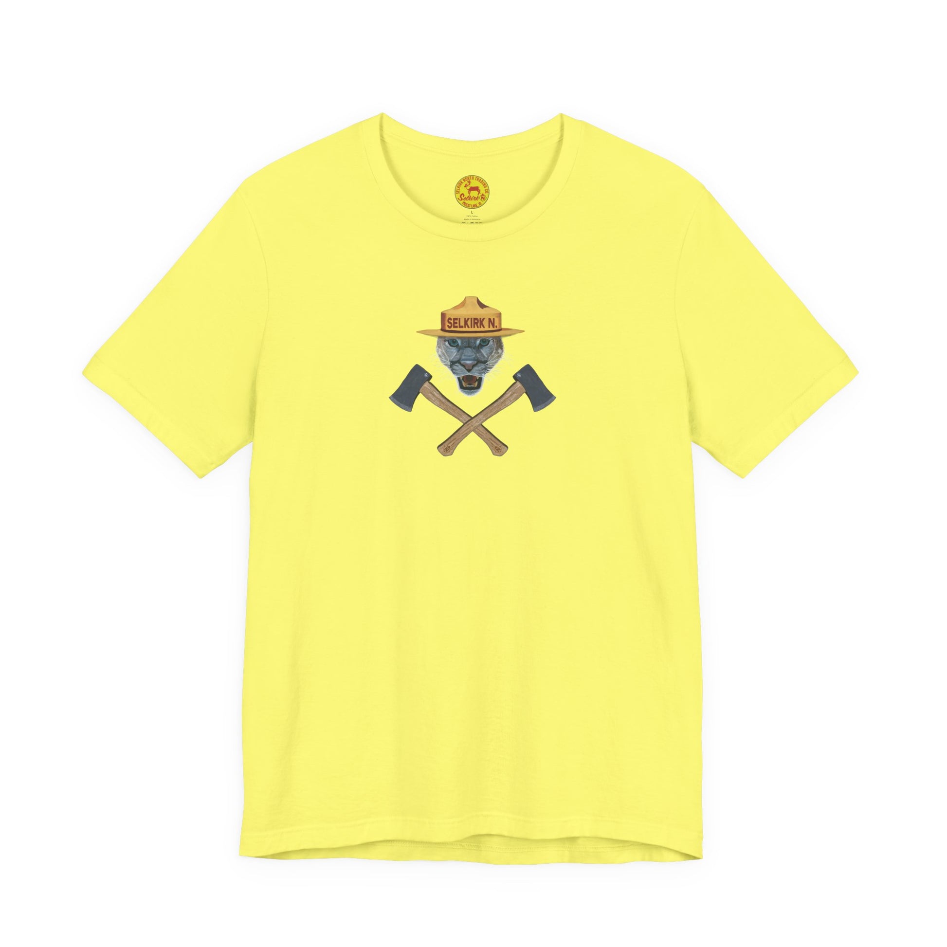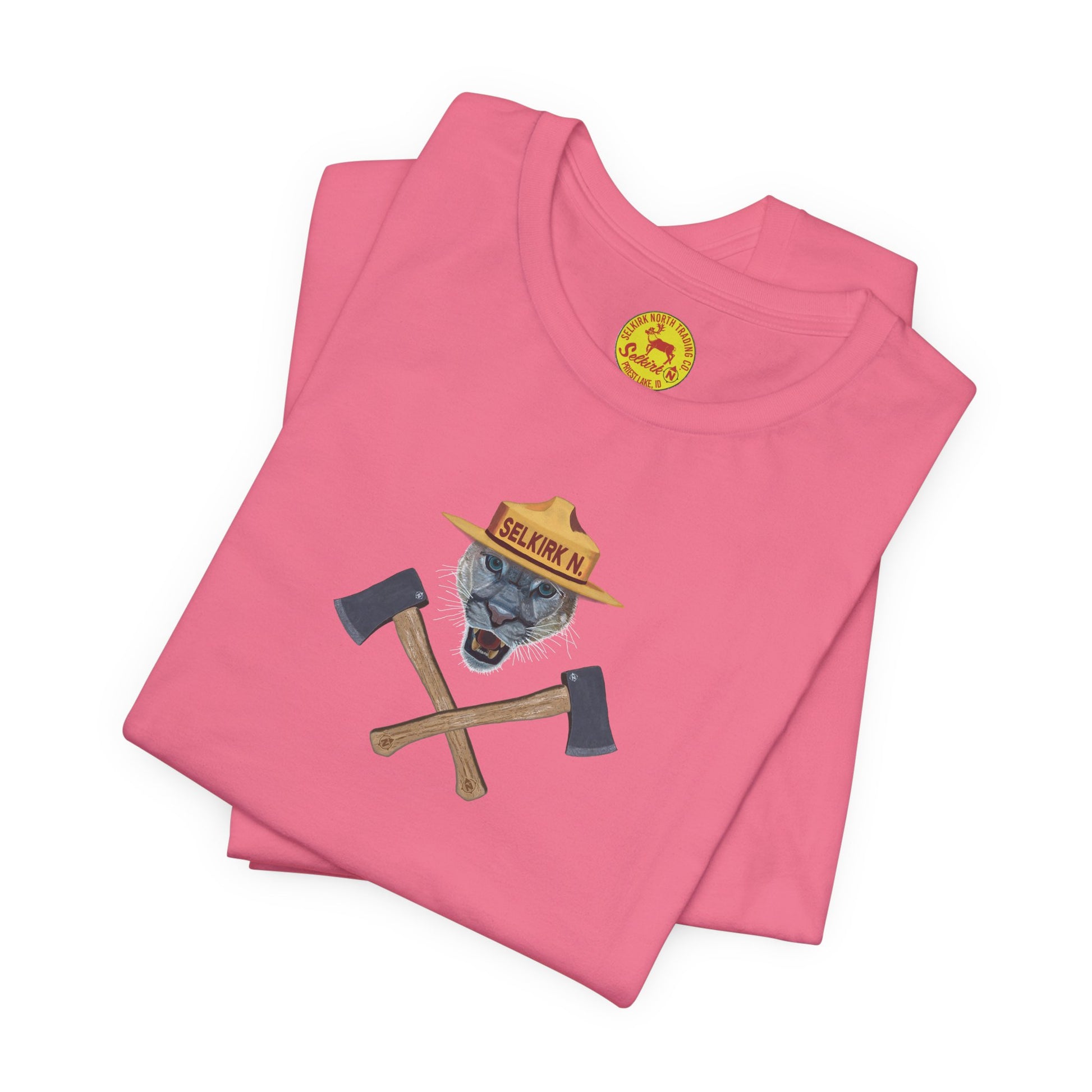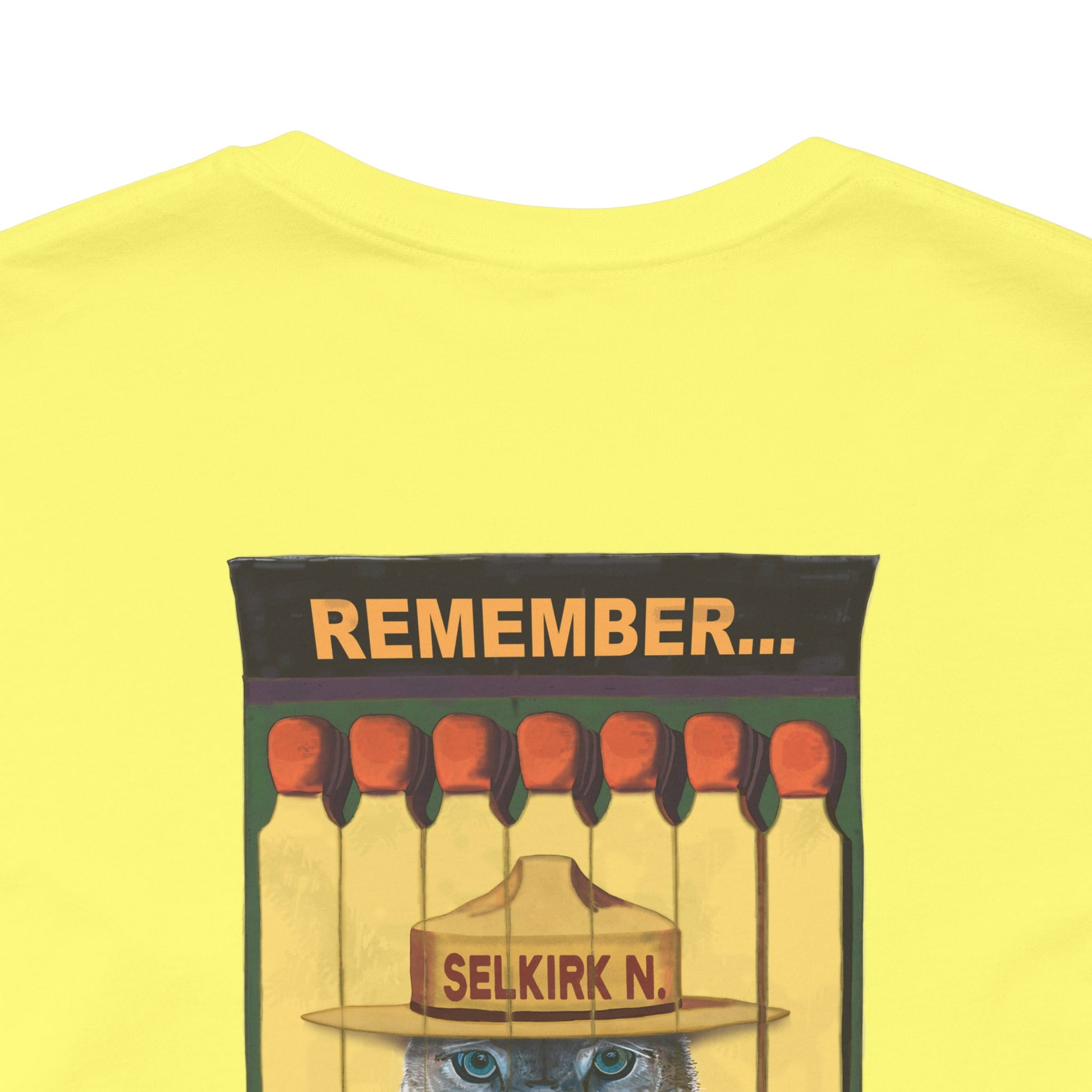 We've done our best to capture the vibe of 1950s Smokey The Bear media with the retro matchbook design featured on the back of this uber comfortable tee. Selkirk Tommy and a pair of crossed hatchets are featured on the front for a retro, campy vibe. This short-sleeved tee fits perfectly and is sure to be your next new favorite.