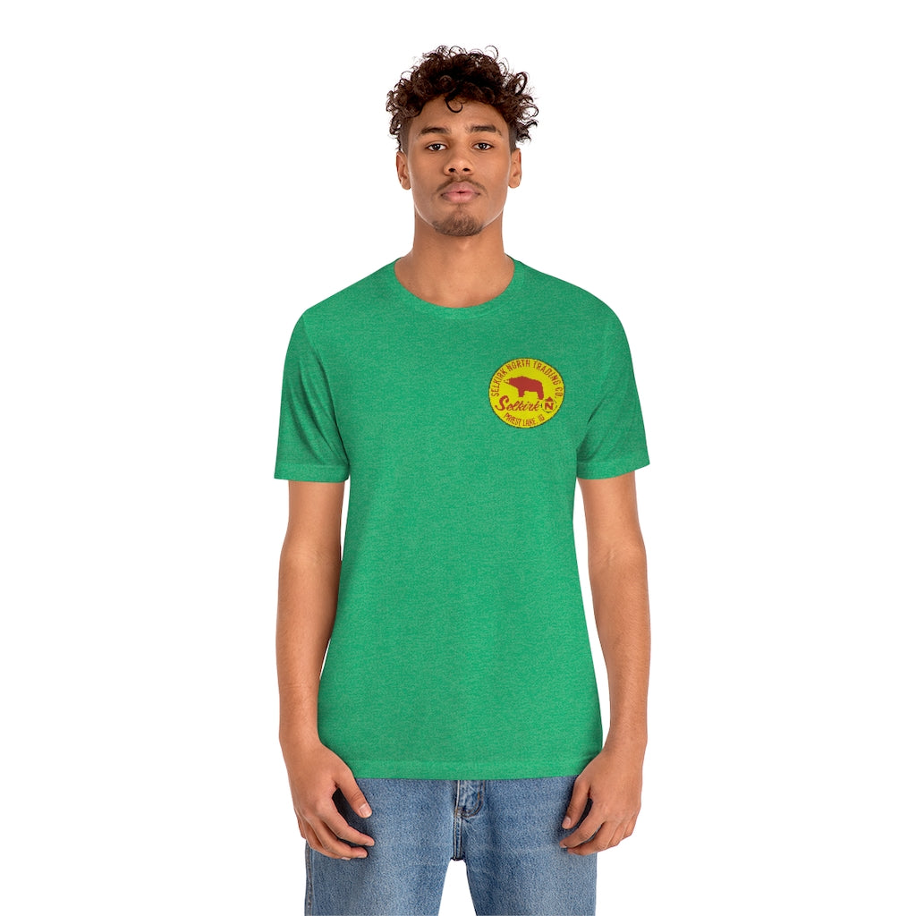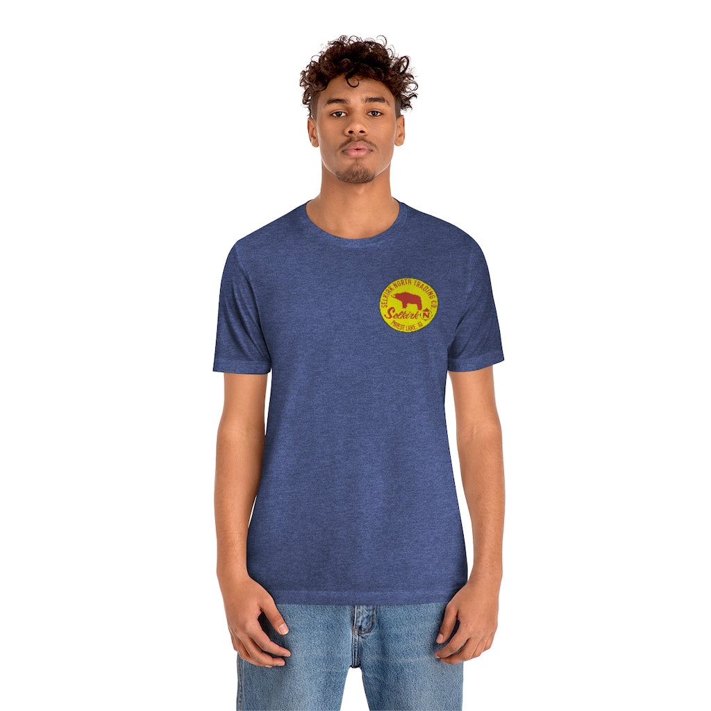 Win, lose, or draw...the 1990's fashion trends seem to be coming back around. We've had some requests for shirts that feature a large design on the back, with a smaller design on the front. Add in our classic "Vintage Trading Co" design, and YAHTZEE! You're welcome.