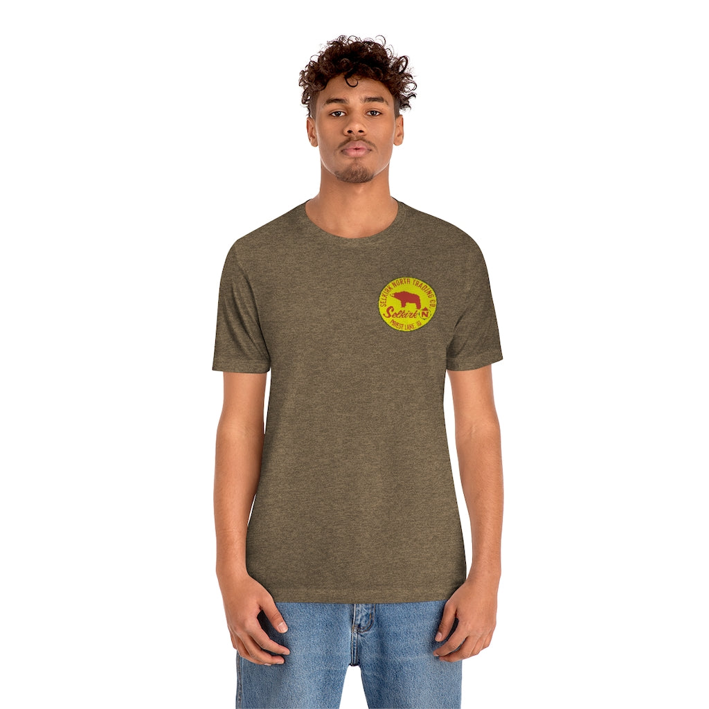 This classic unisex jersey short sleeve tee fits like a well-loved favorite. Soft cotton and quality print make users fall in love with it over and over again. These t-shirts have-ribbed knit collars to bolster shaping. The shoulders have taping for better fit over time. Dual side seams hold the garment's shape for longer.