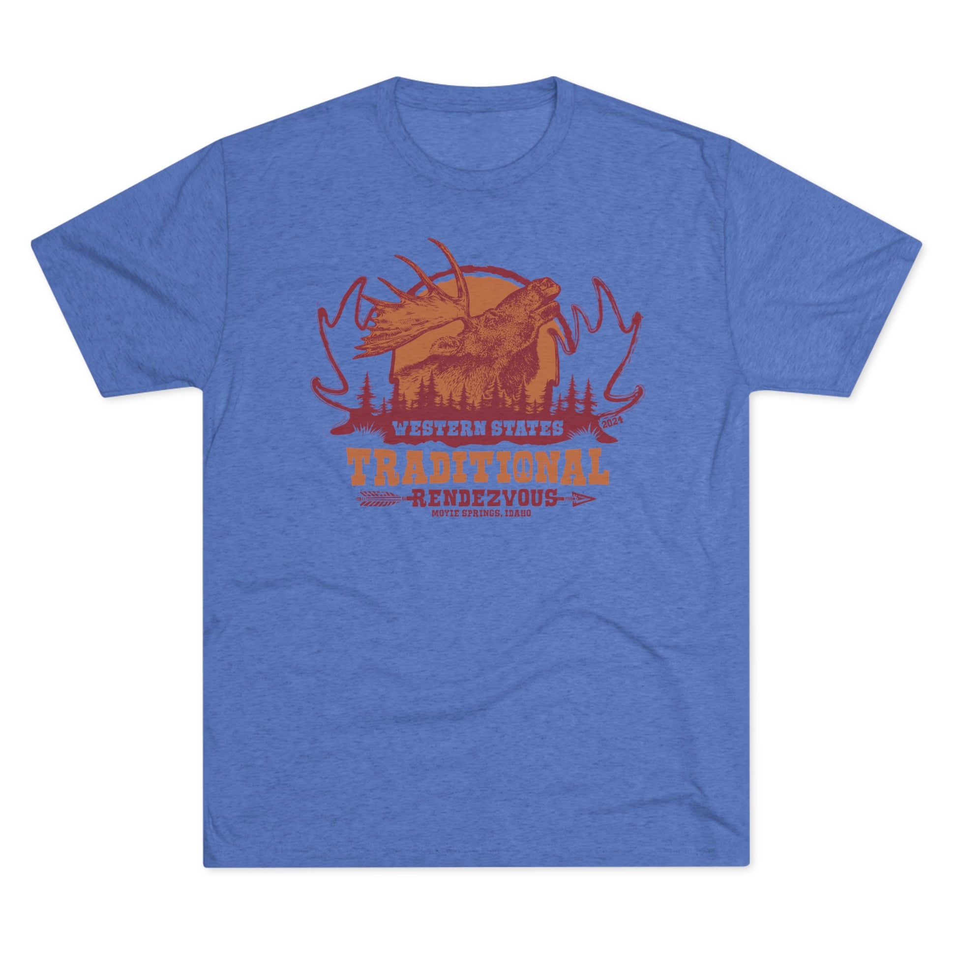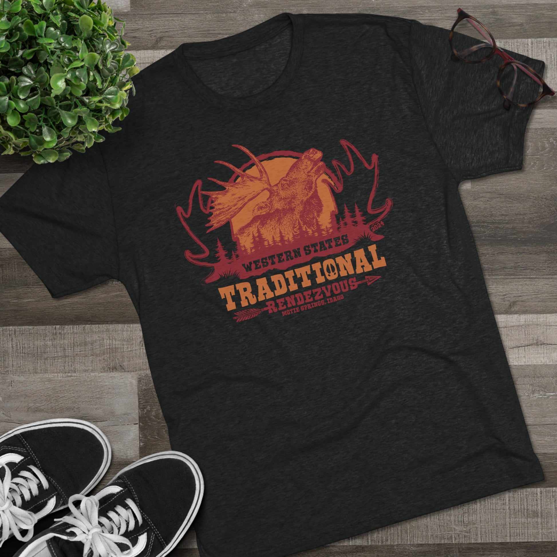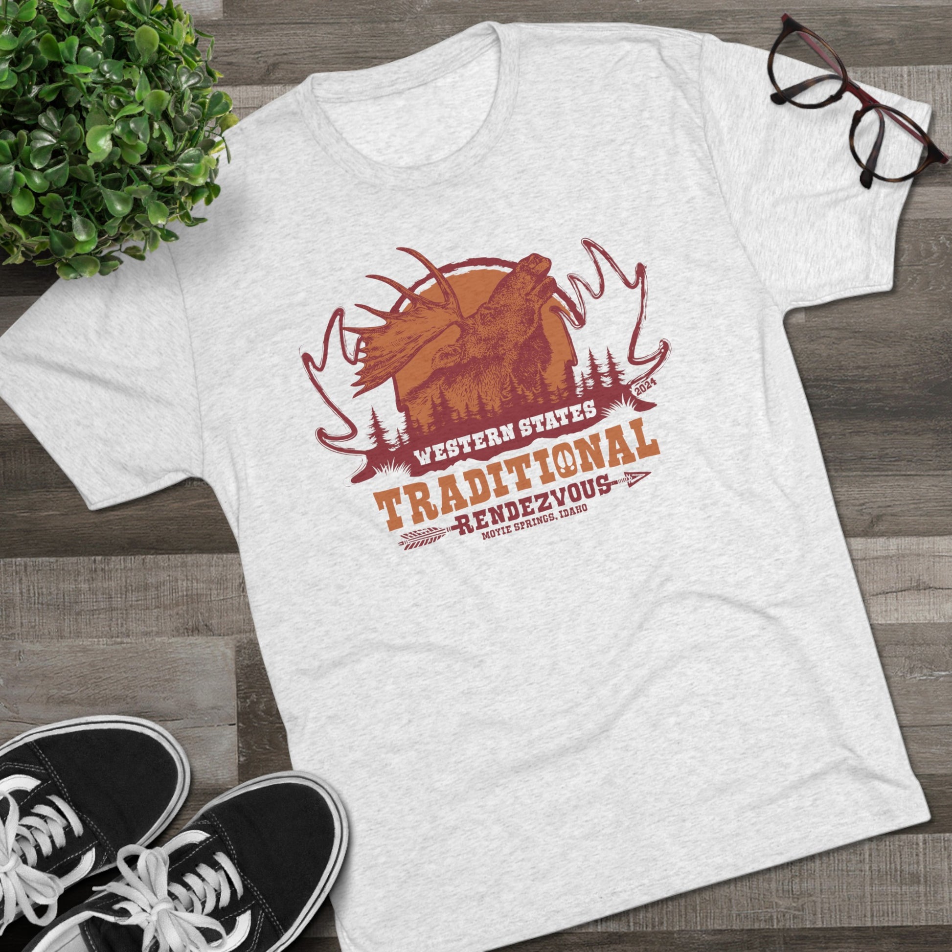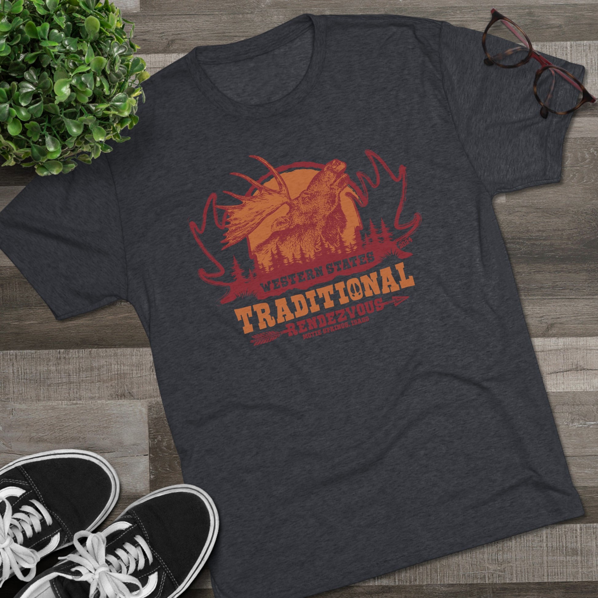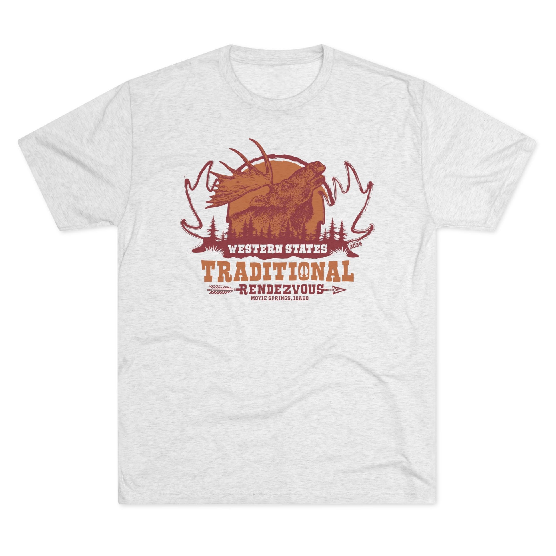 The official T-shirt of the 2024 Western States Traditional Rendezvous. Presented by the Idaho Traditional Bowhunters, held in Moyie Springs, Idaho. May 24th - 27th.