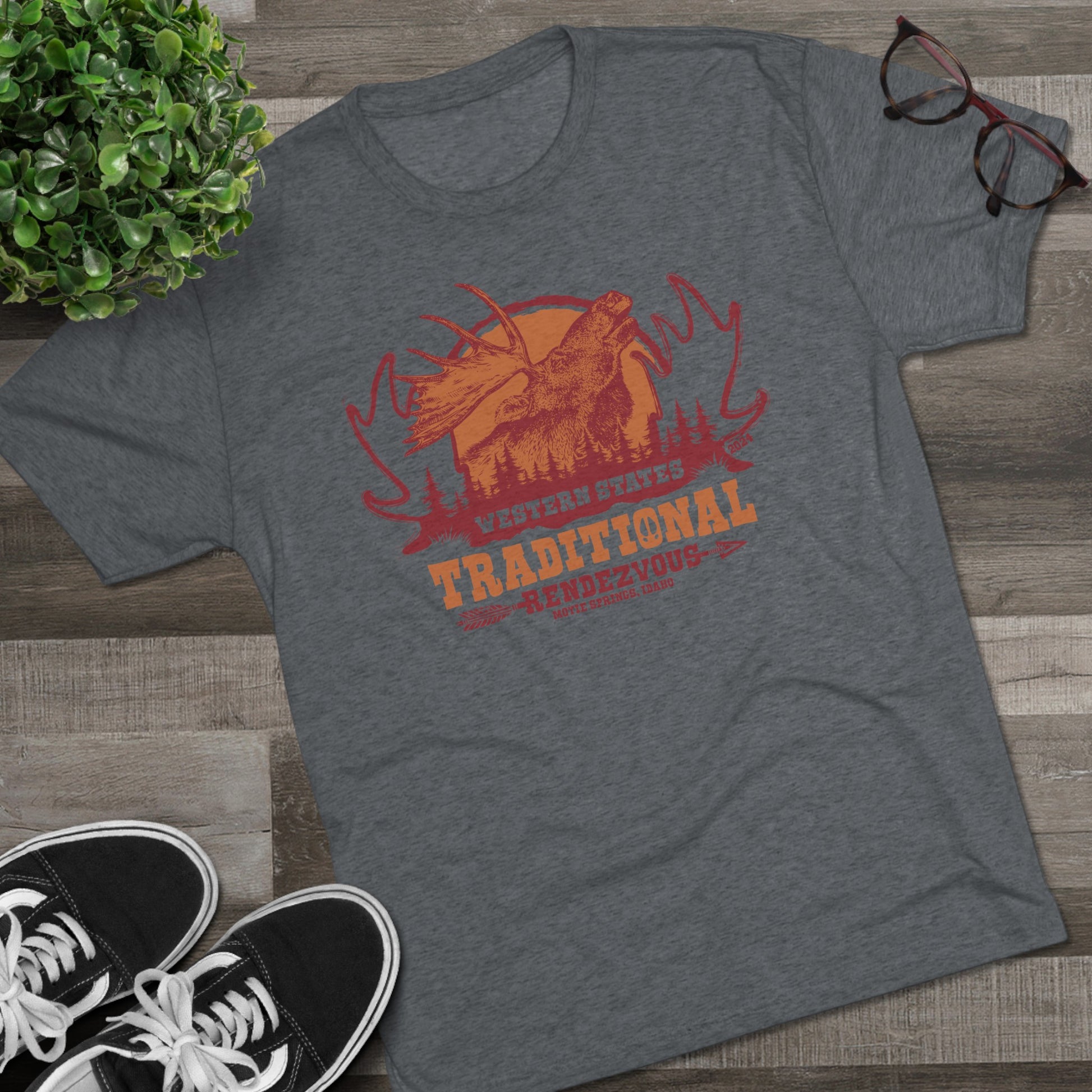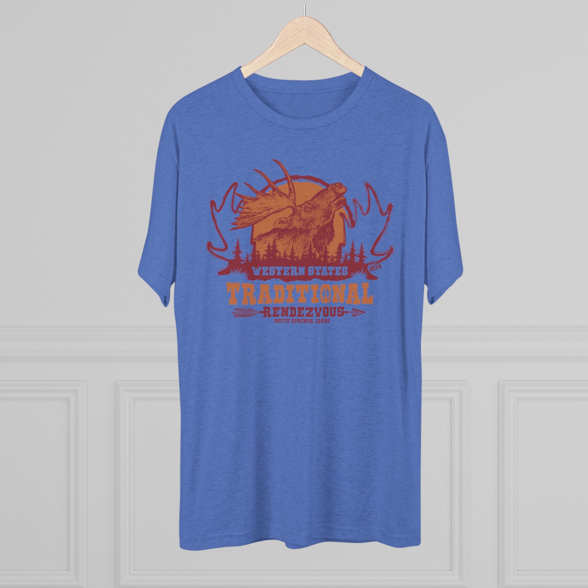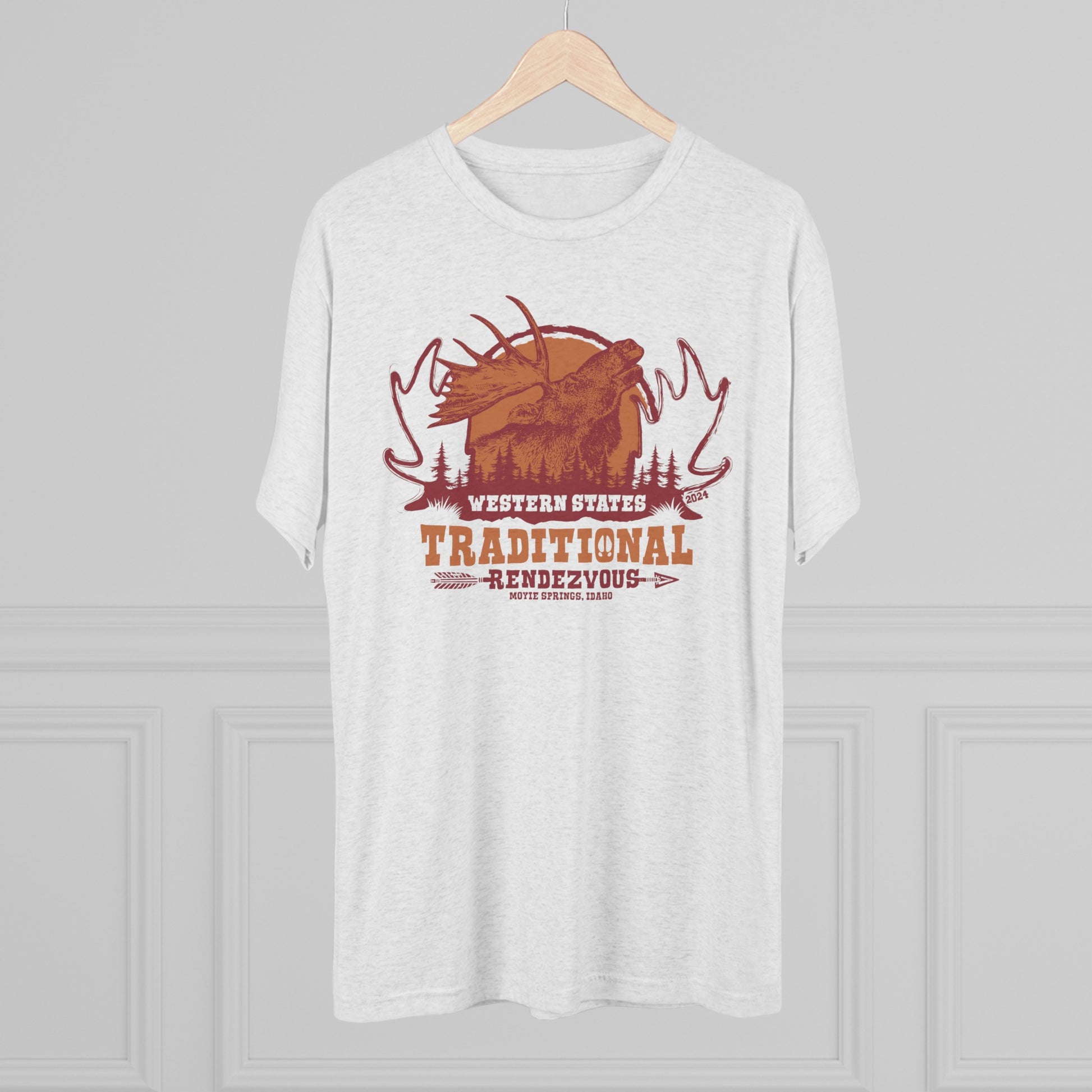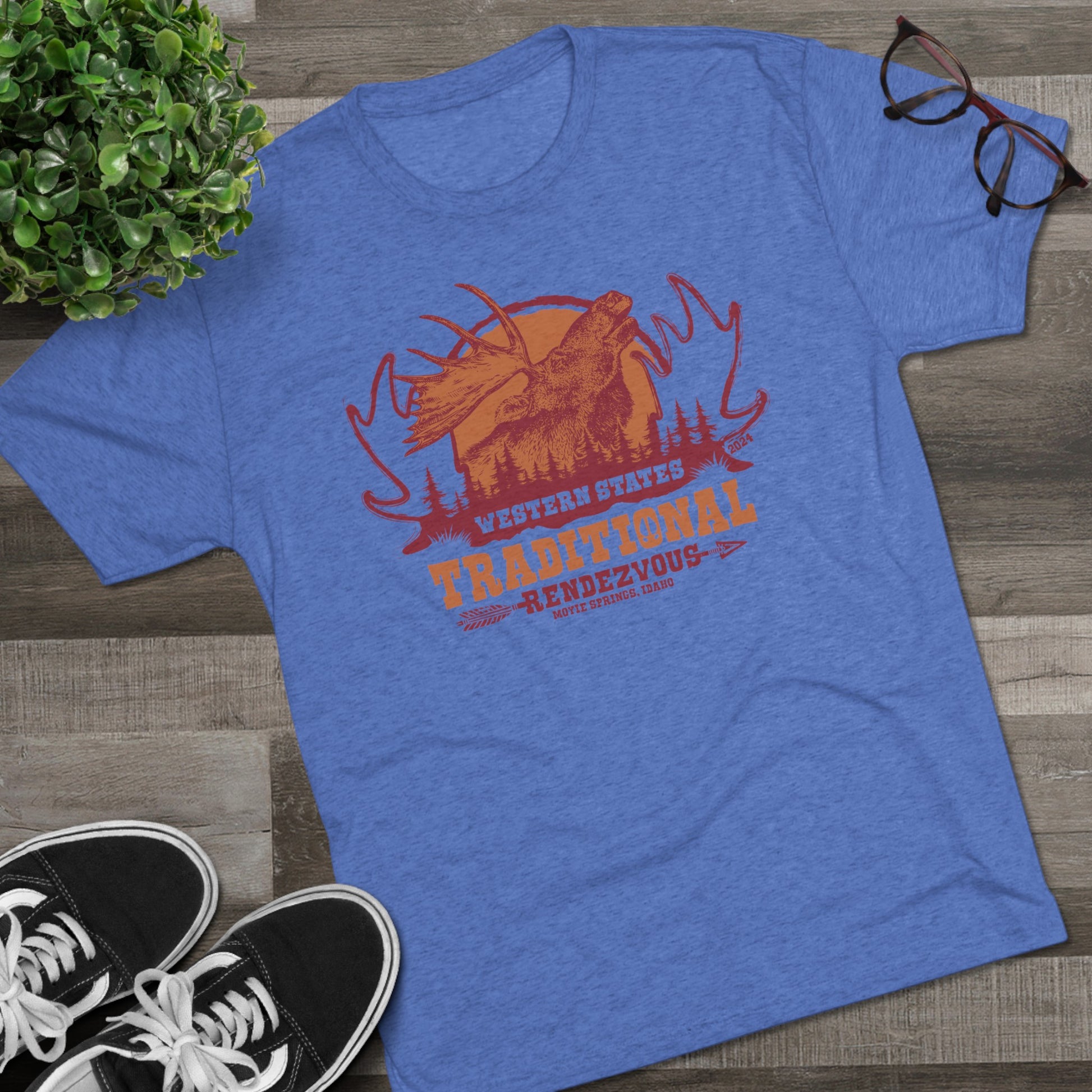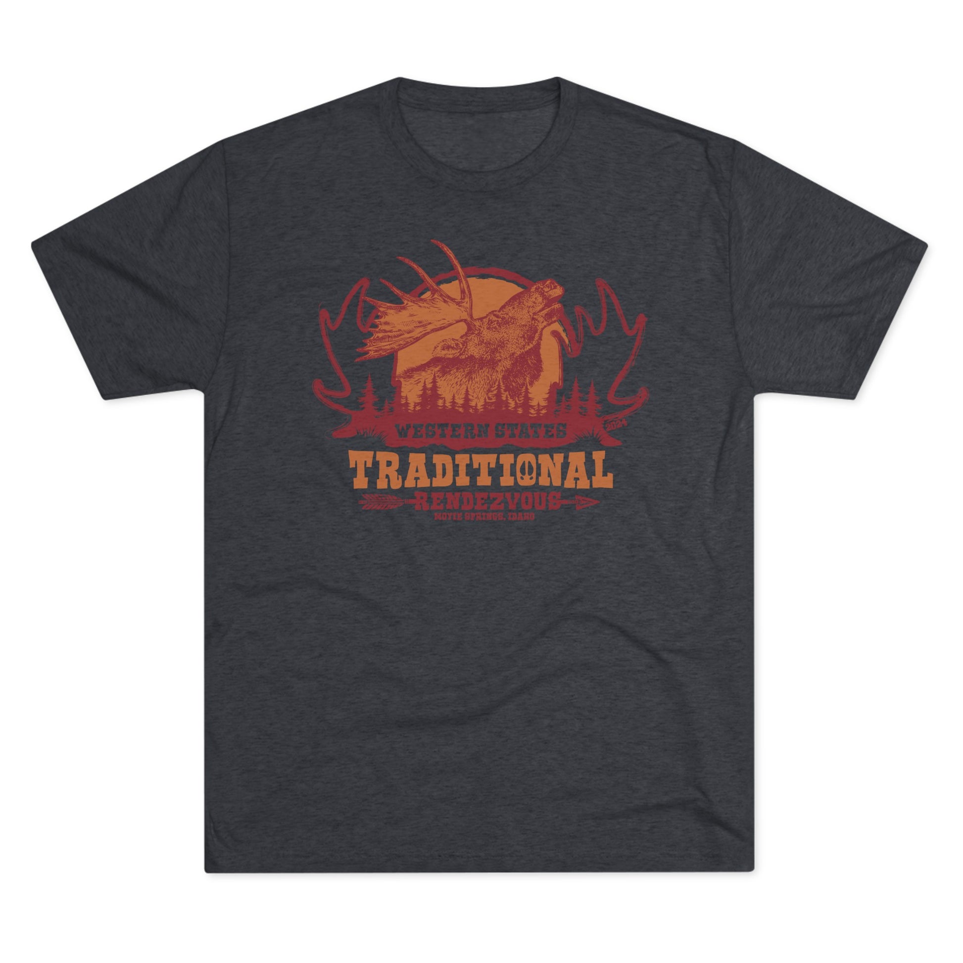The official T-shirt of the 2024 Western States Traditional Rendezvous. Presented by the Idaho Traditional Bowhunters, held in Moyie Springs, Idaho. May 24th - 27th.