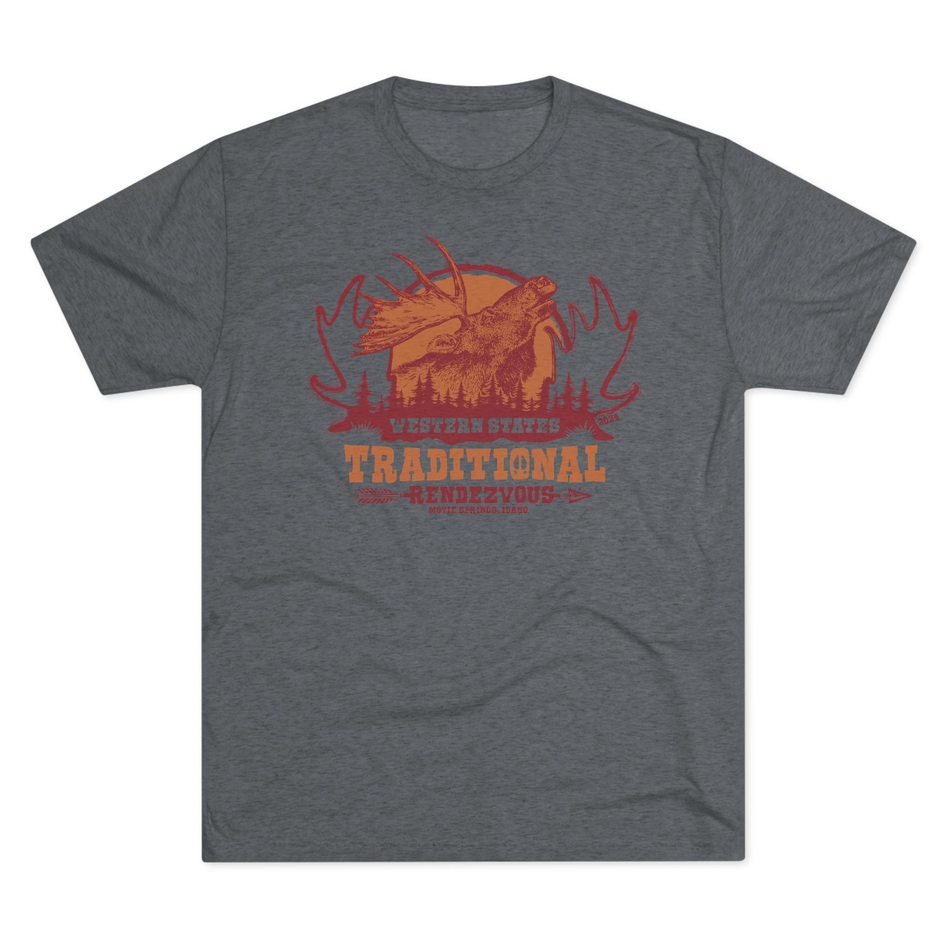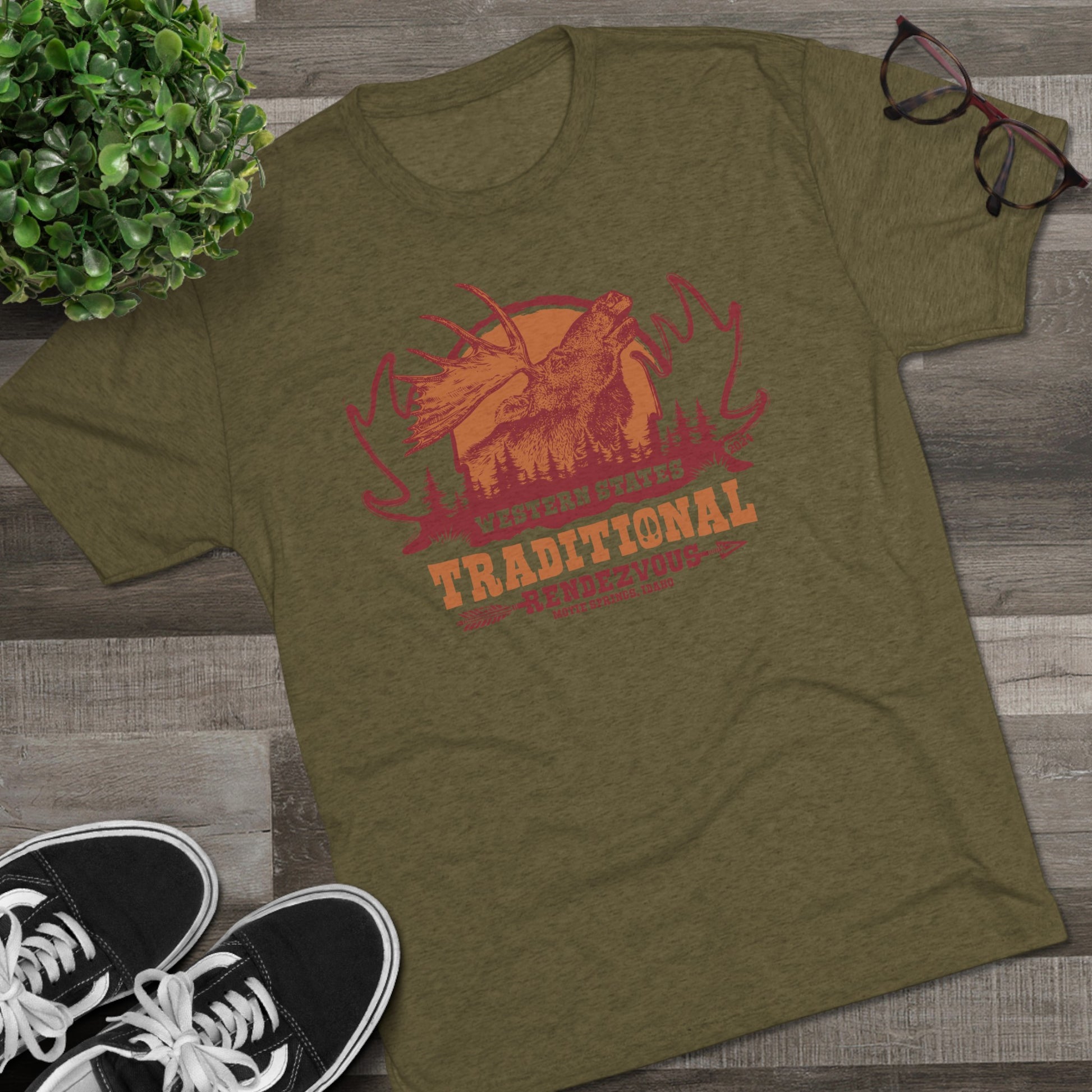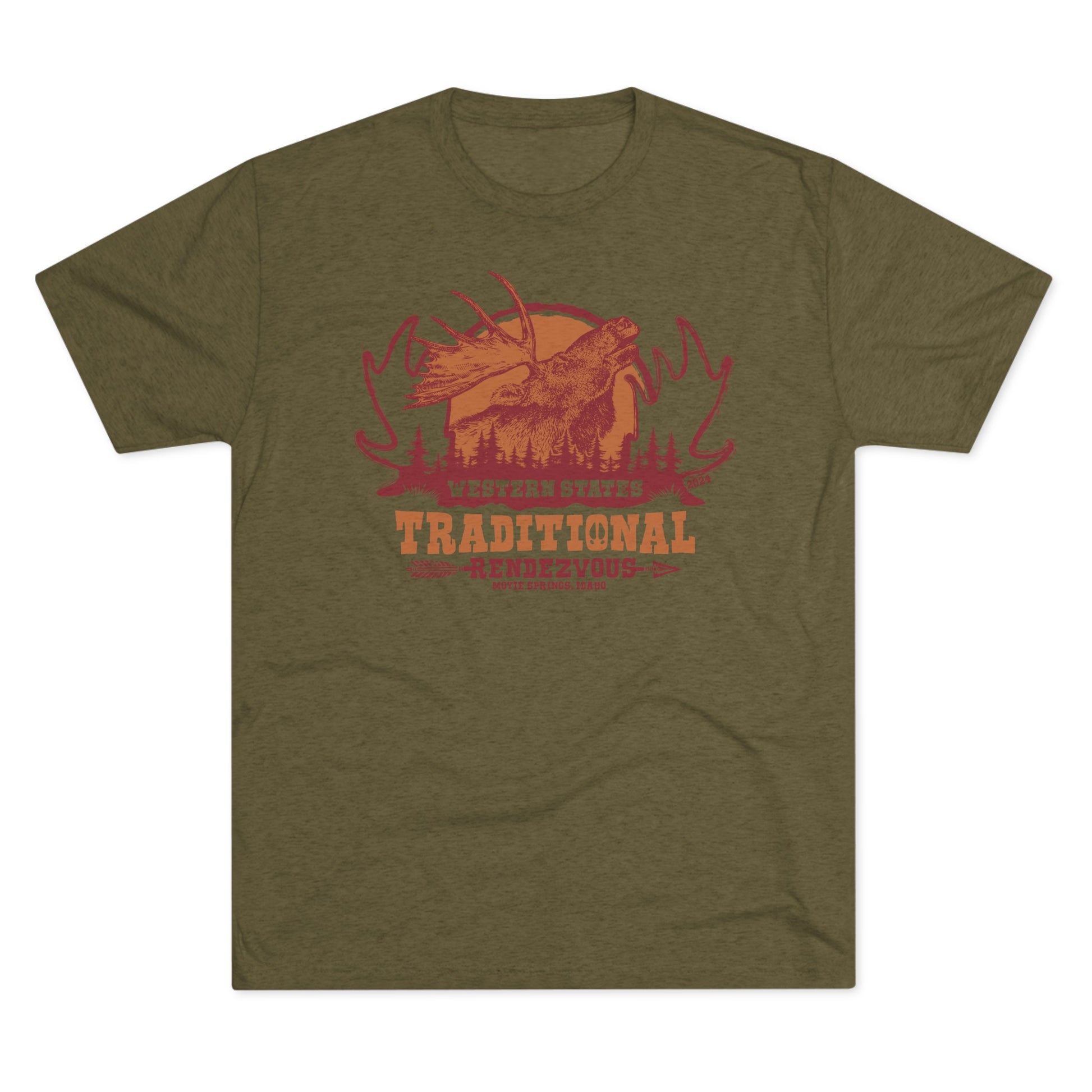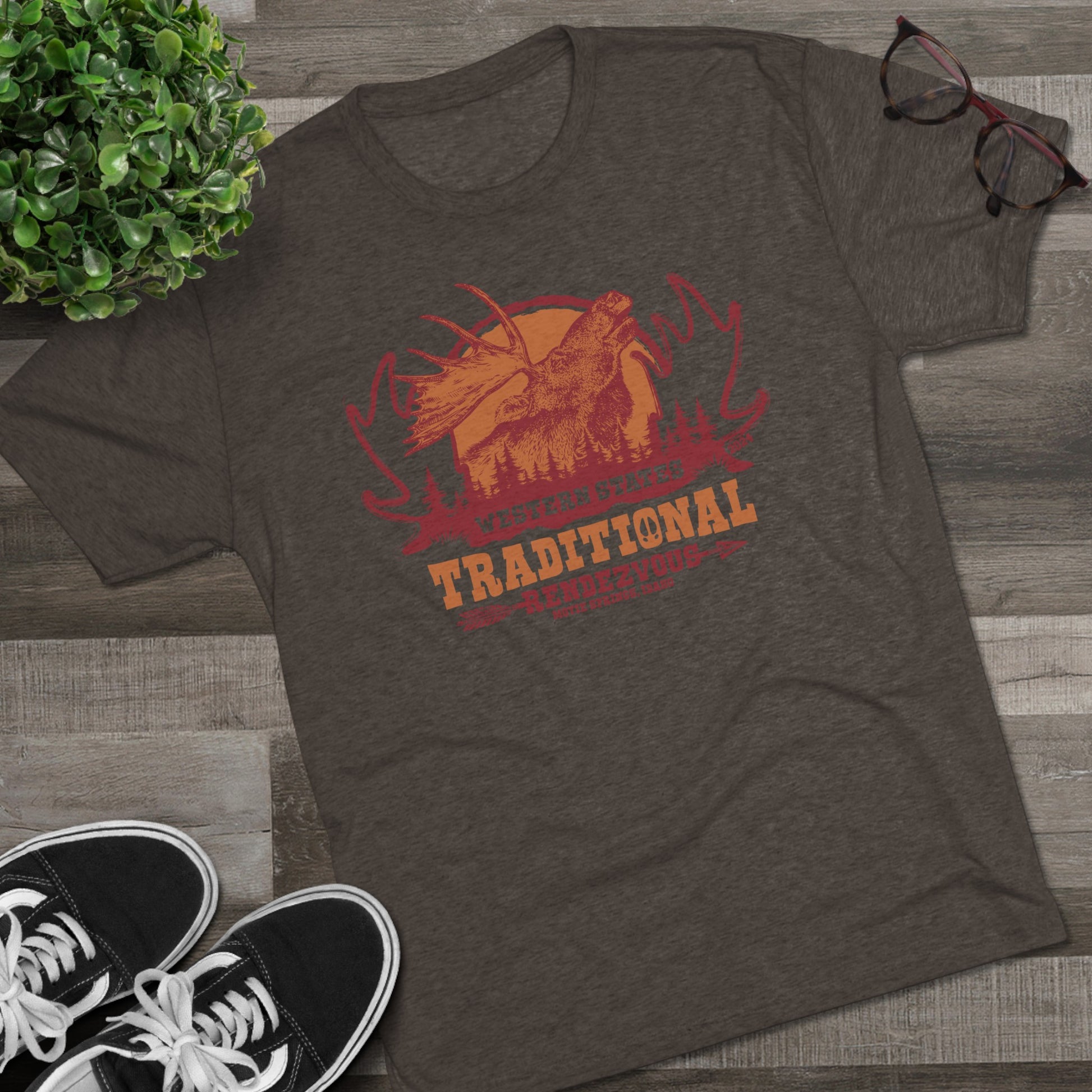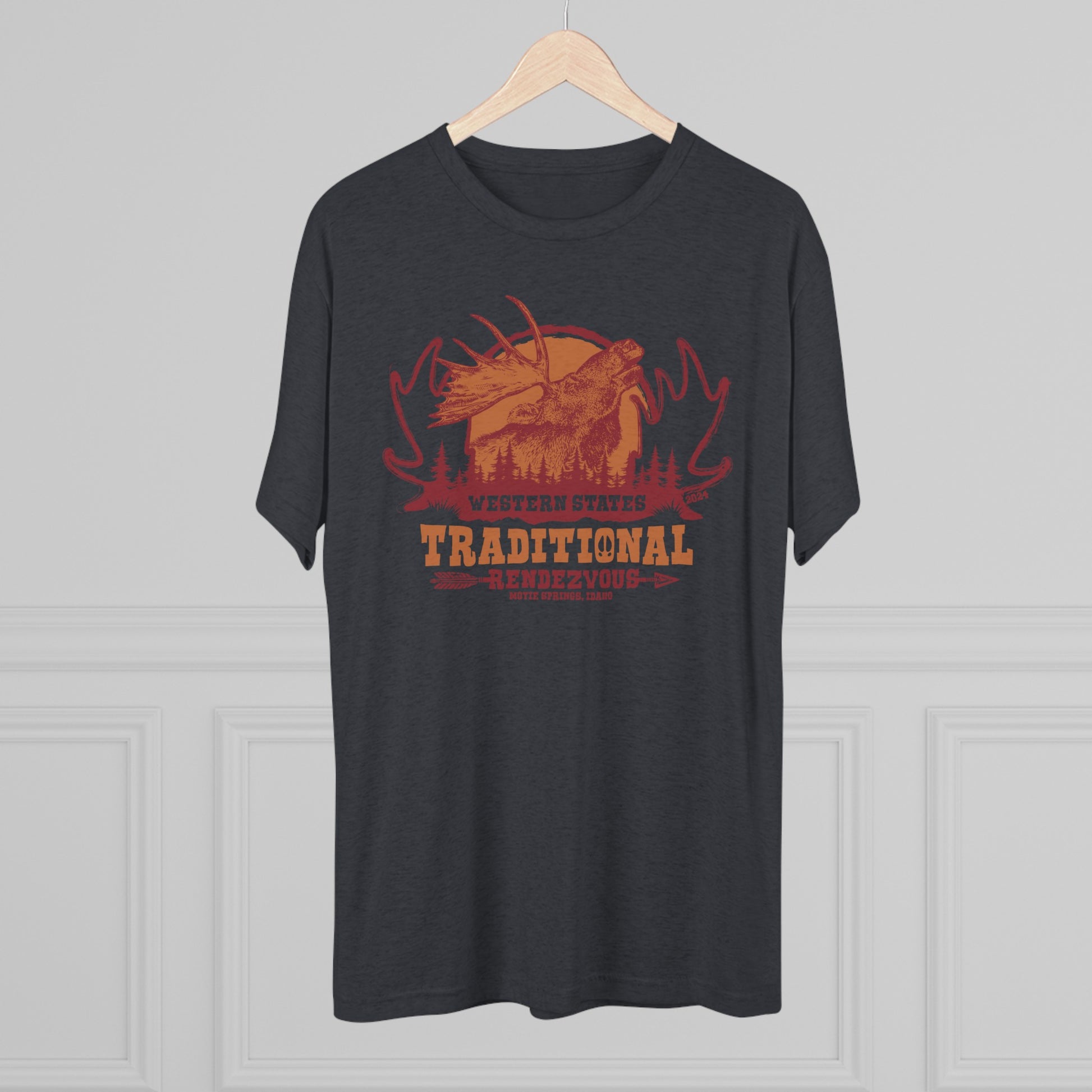 The official T-shirt of the 2024 Western States Traditional Rendezvous. Presented by the Idaho Traditional Bowhunters, held in Moyie Springs, Idaho. May 24th - 27th.